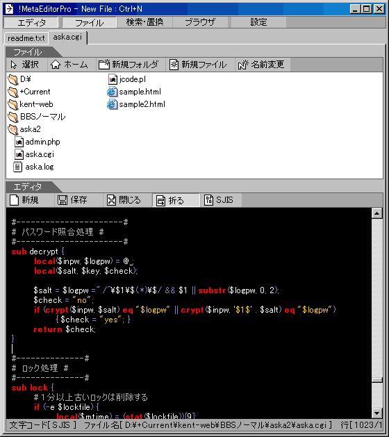 大変お待たせしました。次世代テキストエディタ遂にダウンロード開始。HTML、CGIの設定変更などに大いにご活用ください。